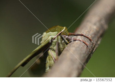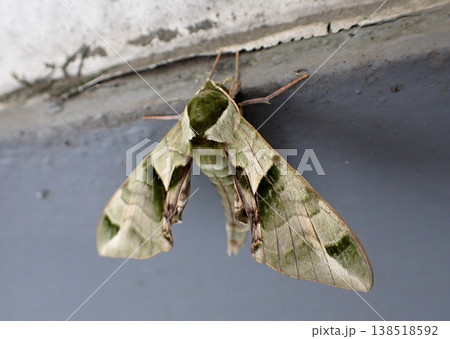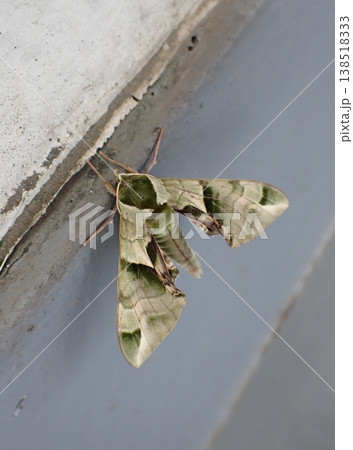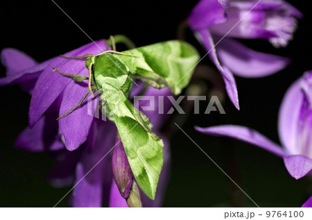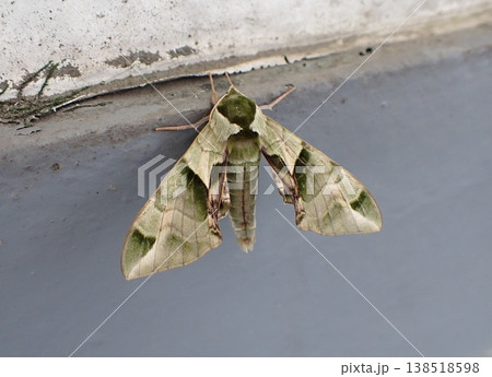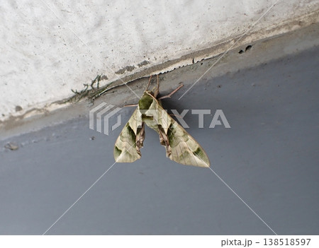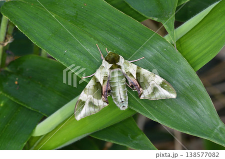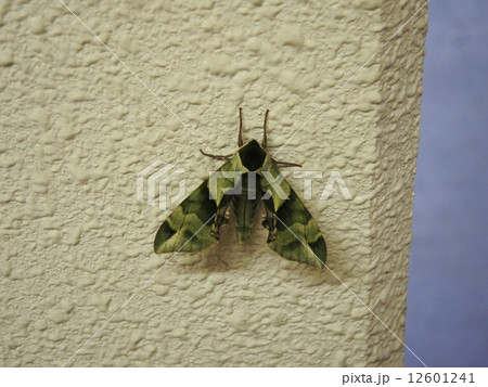 生き物 昆虫 ウンモンスズメ、緑色のコントラストと複雑な模様が美しいスズメガです