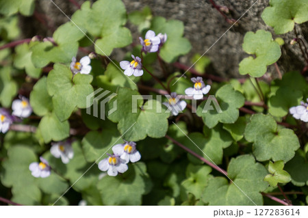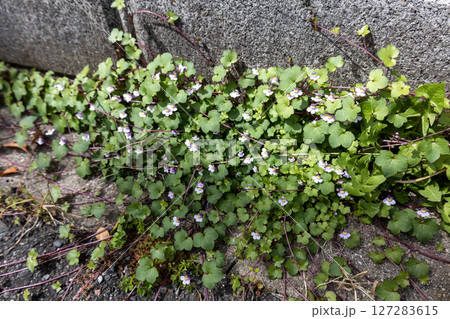 春の道端に咲く薄紫色のツタバウンランの小さな花