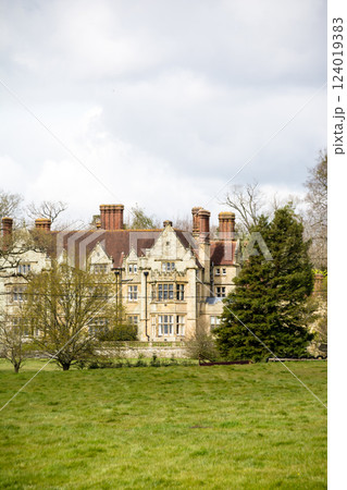 木々に囲まれた歴史的なハニー色のレンガ造りの大屋敷 ロンドン郊外のウーズ渓谷にて