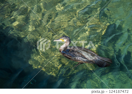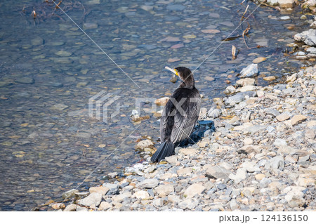 湖岸に立つカワウ 滋賀県大津市琵琶湖