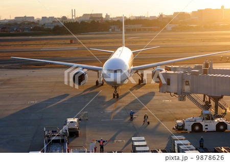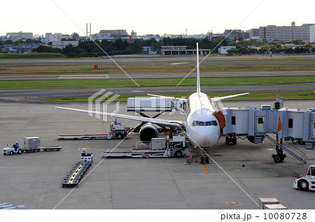 羽田空港のエプロン(駐機場)で待機中の旅客機