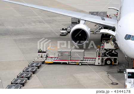 荷物を積む旅客機