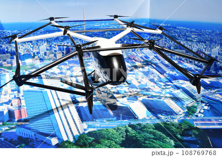 飛行ドローン、ドローンタクシーの素材セット