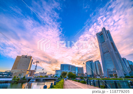 日本の横浜都市景観 秋晴れに映える未来的な“空中交通”「YOKOHAMA AIR CABIN」