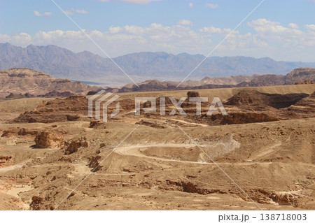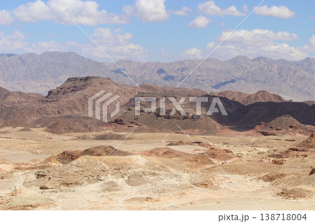 View of the desert. View of the valley with mountains on the backdrop. Timna Park, Eilat, Israel