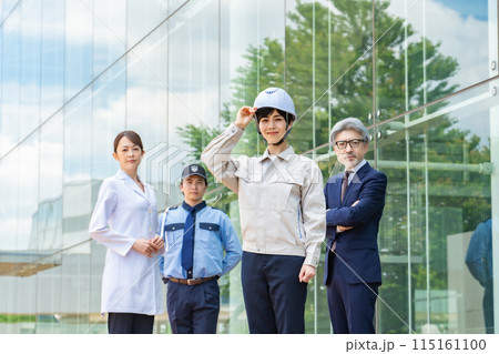 様々な職業の人々(エンジニア・ビジネスマン・研究者・警備員)