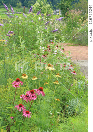 花、庭に咲く夏の花、エキナセア、バレンキク、ガーデニング