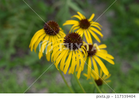 夏のガーデンで咲くルドベキア リトルゴールドスターの花