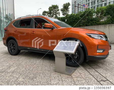 ミニチュアジオラマ風写真 日産本社ショールムの赤いエクストレイル