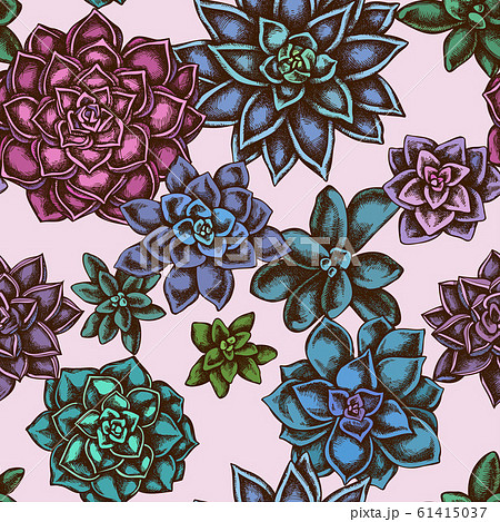 Seamless pattern with hand drawn colored succulent echeveria
