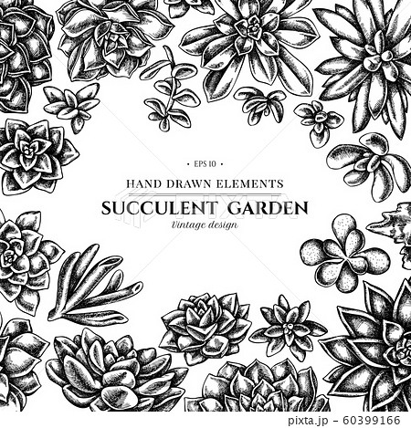 Vector Jungle botanical succulent flower. Black and white engraved ink art. Isolated succulents