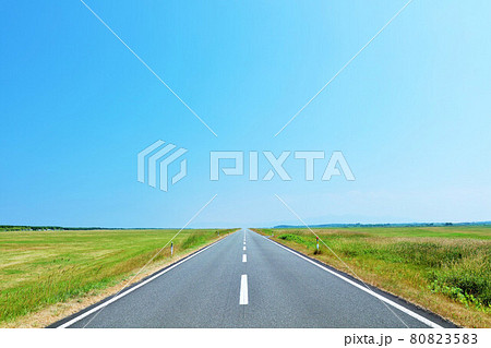 夏の北海道 地平線の彼方 どこまでも続く一本道 猿払街道エサヌカ線