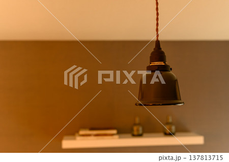 吊り下げ照明と棚のインテリア