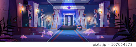 Egypt pharaoh treasure background, ancient pyramid tomb secret room, vector temple interior