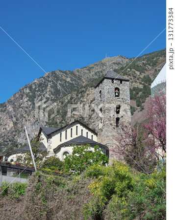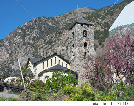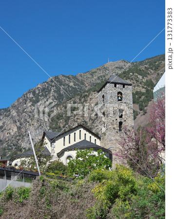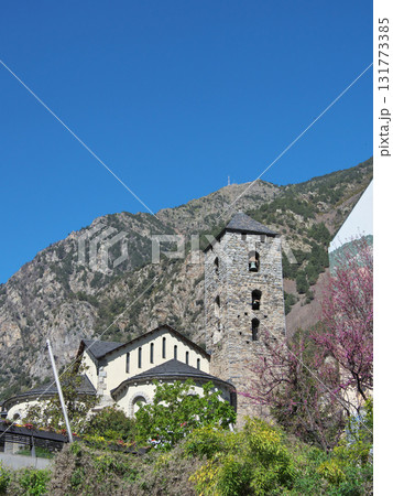 アンドラ公国 アンドラ・ラ・ベリャのサン・エステベ教会 5月晴れの日