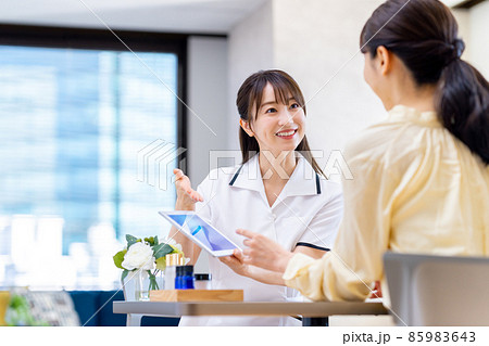 美容のカウンセリングをするエステサロンの女性スタッフ