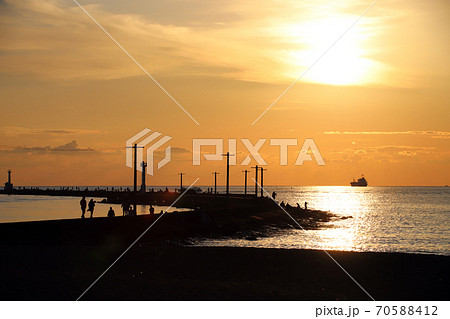 三国サンセットビーチの夕日(福井県 坂井市 三国町 シルエット)