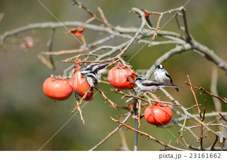 【野鳥】柿を食べに来たエナガ
