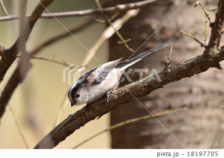 後ろ向きのエナガの長い尾