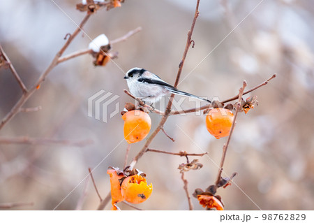【野鳥】柿を食べるエナガ