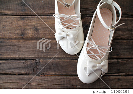 白のドレスとエナメルの靴 キッズフォーマルドレス