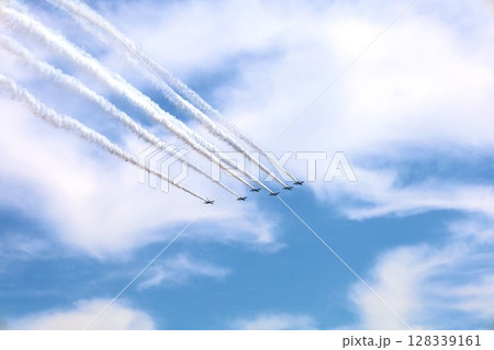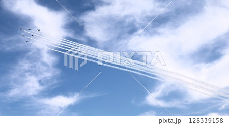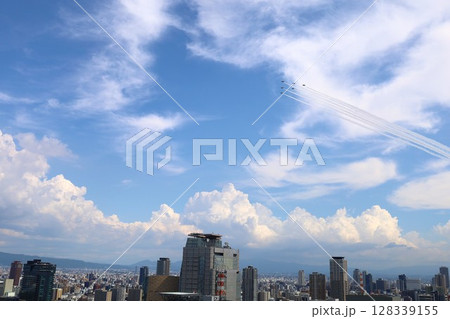 夏の大阪、夏空に飛ぶブルーインパルス、大阪の空の下、関西万博が開催、ブルーインパルスありがとう