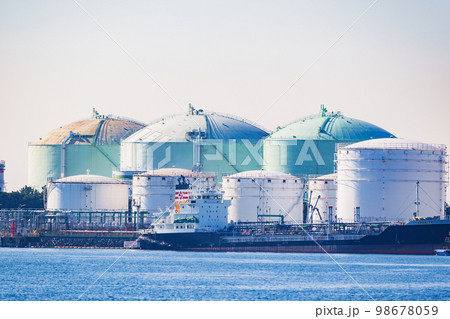 石油備蓄タンク が立ち並ぶ 東京湾 の 沿岸 【 エネルギー の イメージ 】