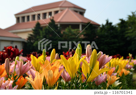 埼玉県深谷市アクアパラダイスパティオ 朝咲き誇る美しい百合