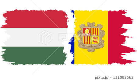 Andorra and Hungary grunge flags connection vector