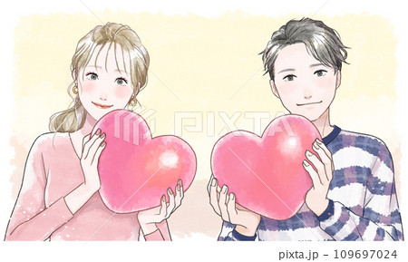ハートを持ったカップルのアイキャッチ 水彩風