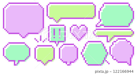 ピクセルアート風吹き出し素材セット | カラフルでレトロなデザイン ( 版ズレ風 )