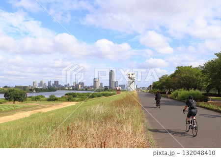 夏の埼玉県川口市の風景 荒川河川敷 8月