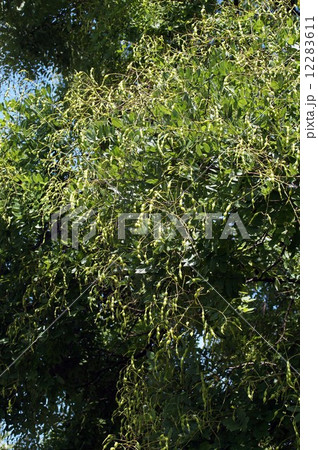 たくさんの実をつけた枝垂れ槐(シダレエンジュ)