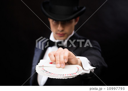Magician vector illusionist show magic man illusion or magical illusionism and cartoon character