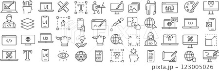 ベクターでモノクロのウェブ開発に関する線画アイコンセット