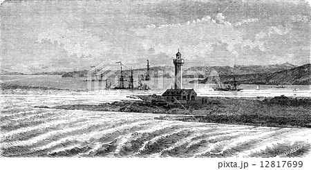 Mouth of the Avon, vintage engraving.