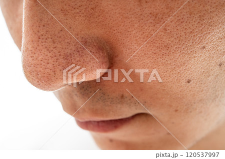 いちご鼻のクローズアップ:30代男性の毛穴と角栓