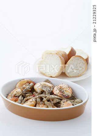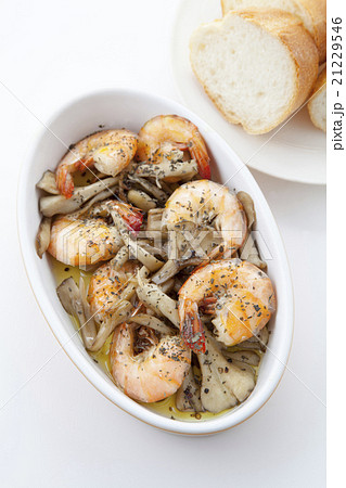 海老とまいたけのアヒージョフランスパン添え俯瞰