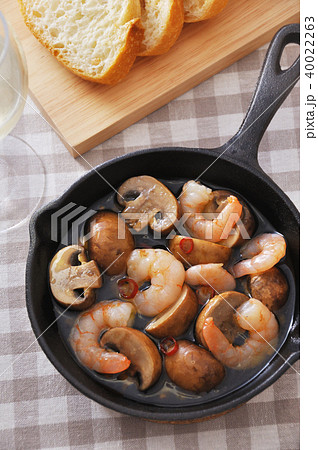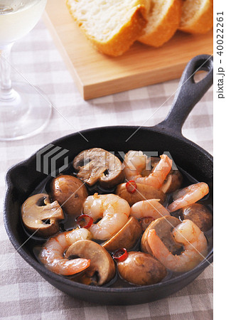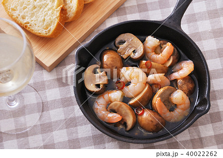 エビとマッシュルームのアヒージョ