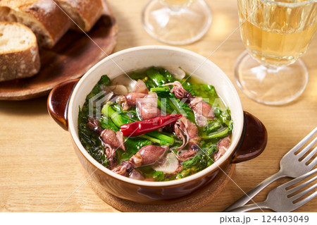 ホタルイカと菜の花のアヒージョ