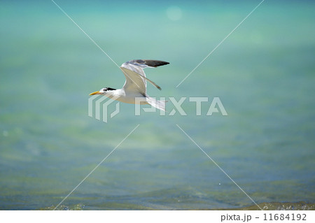 生き物 鳥類 オオアジサシ、羽を広げて滑空する