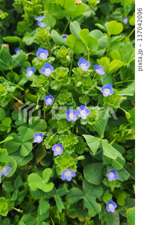 春の野原に咲く紫のカワイイ花 オオイヌノフグリ