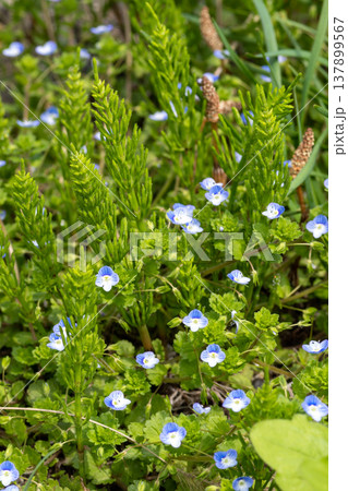 春の野原に咲くオオイヌノフグリの青い花