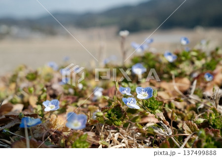 早春の国営みちのく湖畔公園 一面に咲くオオイヌフグリ 宮城県川崎町