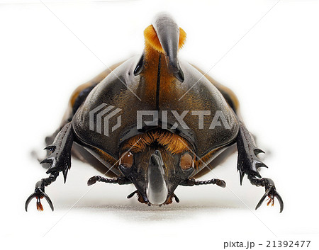 コーカサスオオカブトの角のアップ 白バック