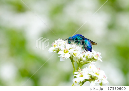 白い花にとまっている美しいオオセイボウ