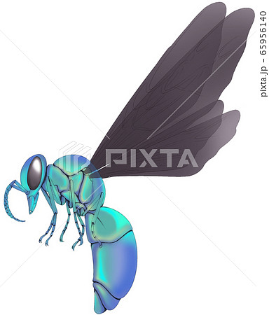 生き物 昆虫 オオセイボウ、青い体に黒の半透明の羽をまとったとびきり美しいハチです