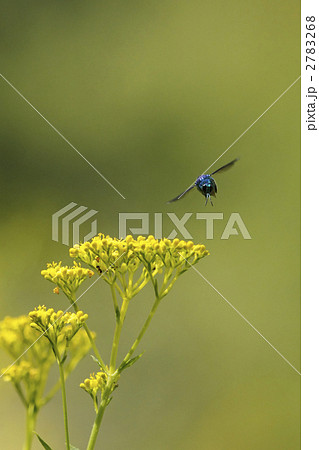 生き物 昆虫 オオセイボウ、飛ぶ宝石。深みのあるブルーのグラデーションが何とも美しい