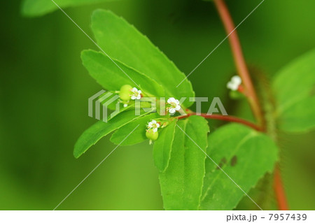 オオニシキソウ 小さな白い花と緑の丸い実がなる マクロ撮影
