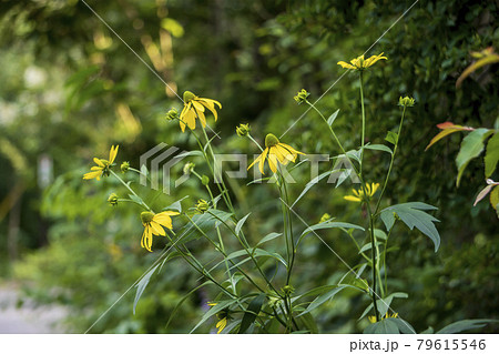 道端に咲いたオオハンゴンソウの花と葉の形【特定外来生物】/キク科オオハンゴンソウ属(ルドベキア属)